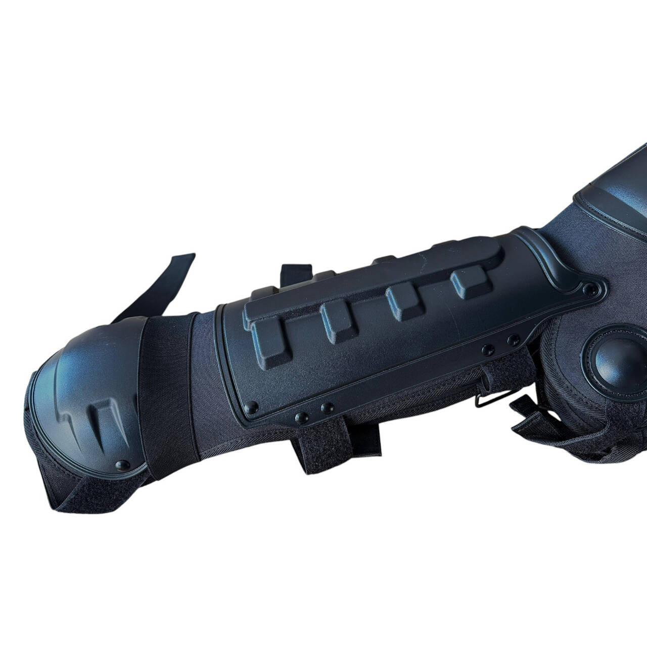 Set protectii pentru picioare, un echipament ideal pentru firme de paza si pentru unitati de jandarmerie. Se poate ajusta inaltimea individual, ofera protectie pentru laba piciorului, tibie si pentru genunchi.