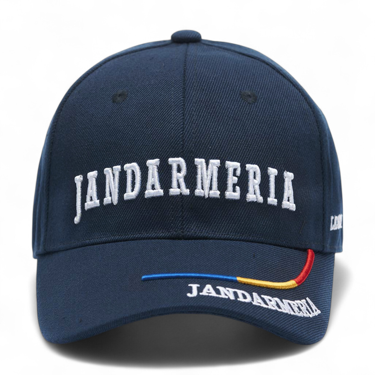 Șapcă de calitate premium, destinată Jandarmeriei IGJR, confecționată din material acrilic special pentru șepci. Design elegant, în culoare bleumarin, cu broderie 3D de înaltă calitate pe panoul frontal – text alb cu contur gri metalizat (silver).