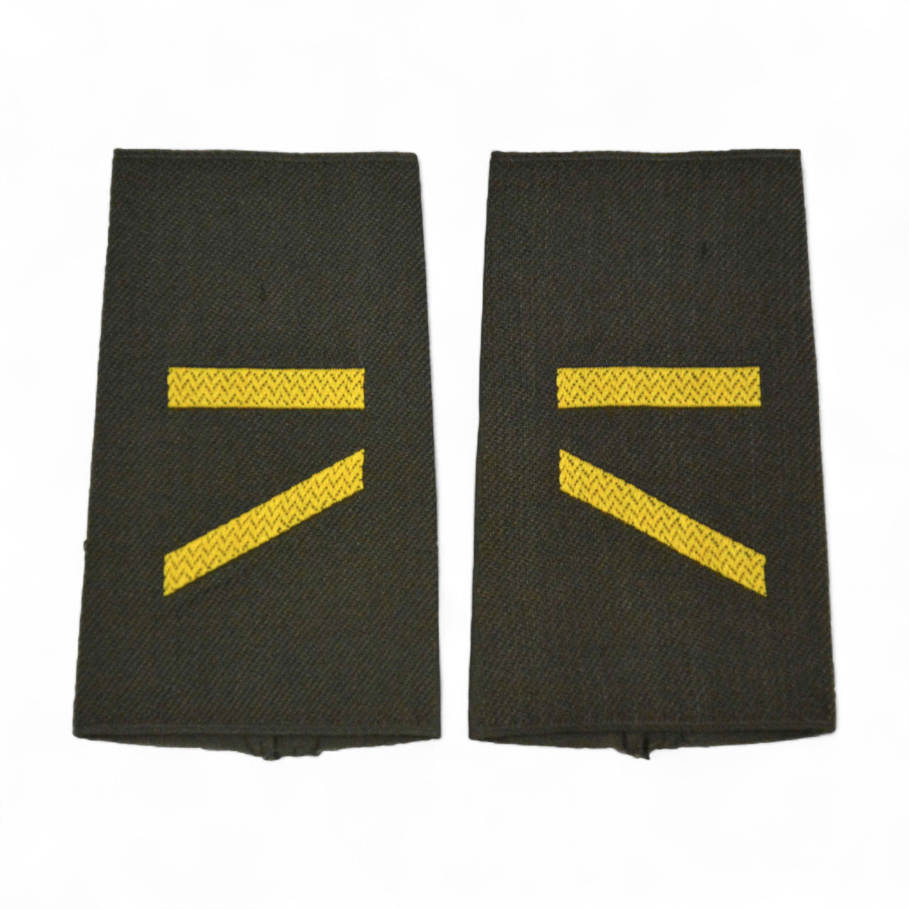 Pereche grade ale Armatei (Marinei) Germane pentru îmbrăcăminte de teren, de culoare măslinie, țesute, ușor trapezoidale, brodate cu fir ariu.