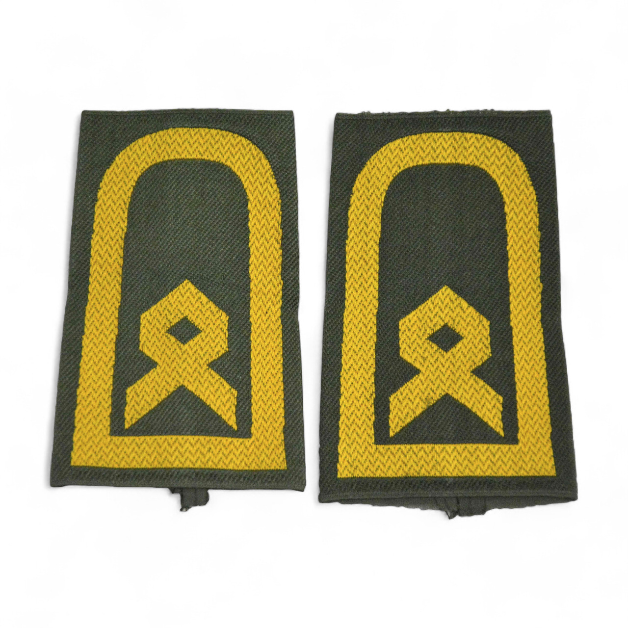 Pereche grade ale Armatei (Marinei) Germane pentru îmbrăcăminte de teren, de culoare măslinie, țesute, ușor trapezoidale, brodate cu fir ariu.