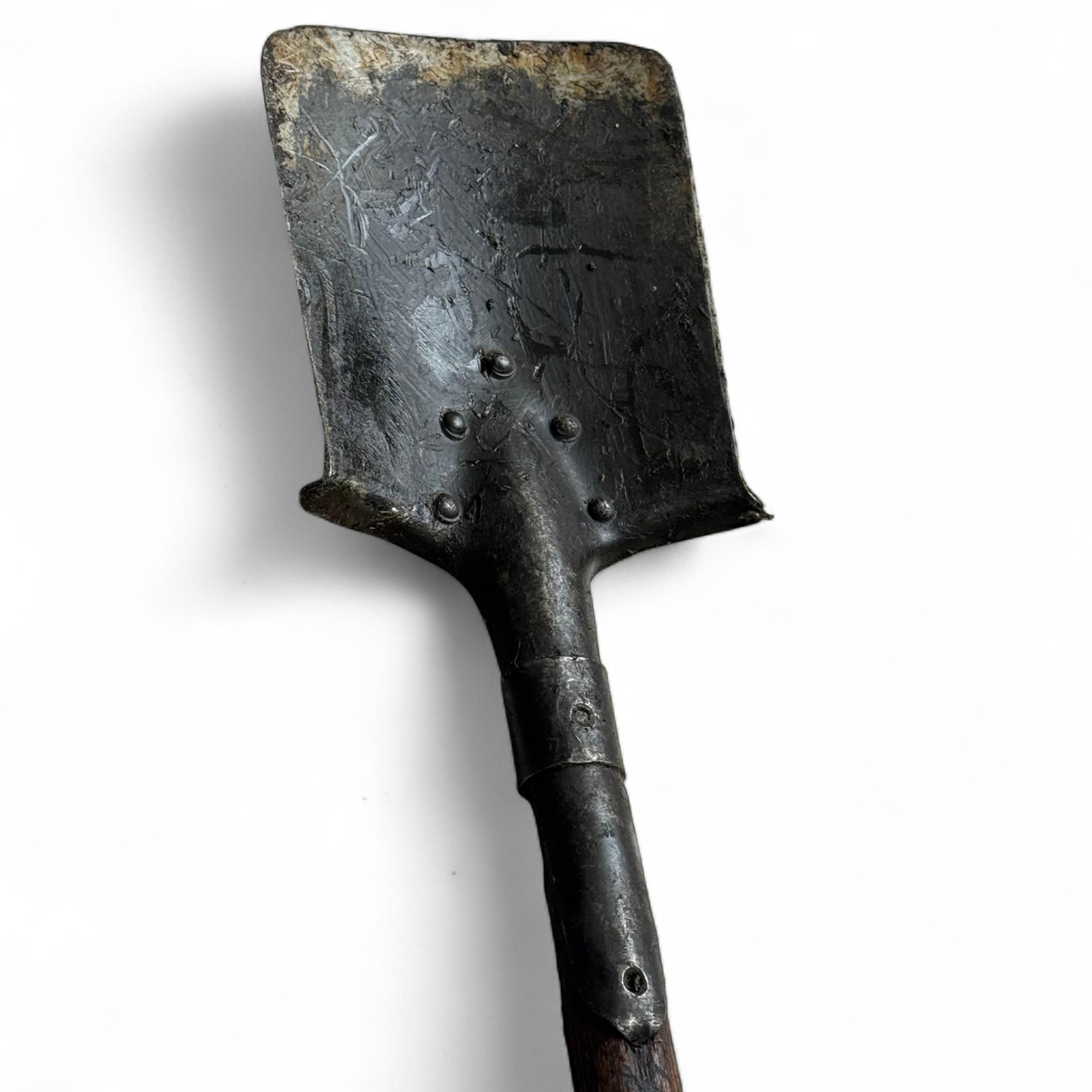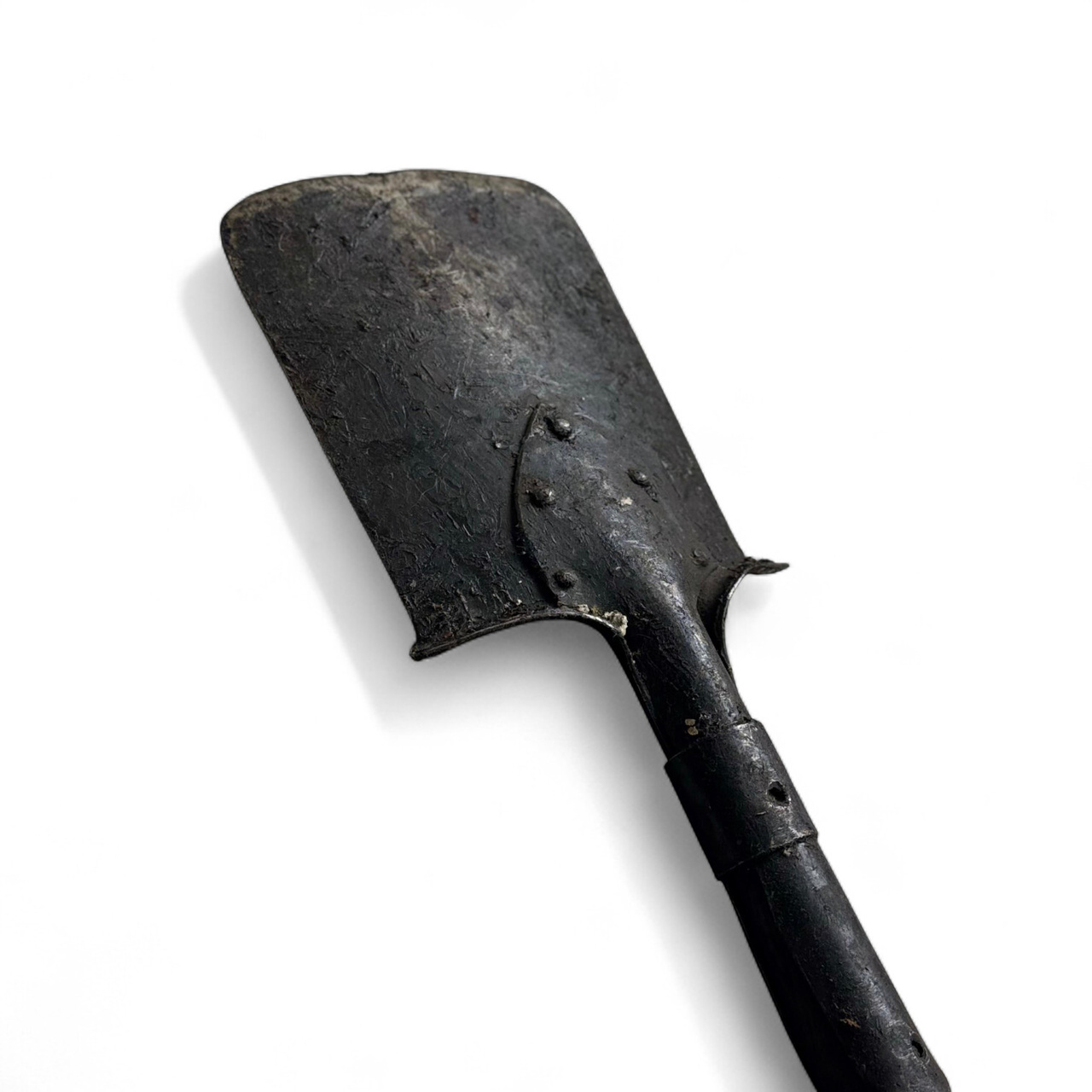 Lopată originală de tranșee, folosită în timpul Primului și celui de-Al Doilea Război Mondial, model german clasic. Această unealtă militară a fost un element esențial din dotarea soldaților de pe front, utilizată atât în construcția tranșeelor, cât și în condiții de luptă.