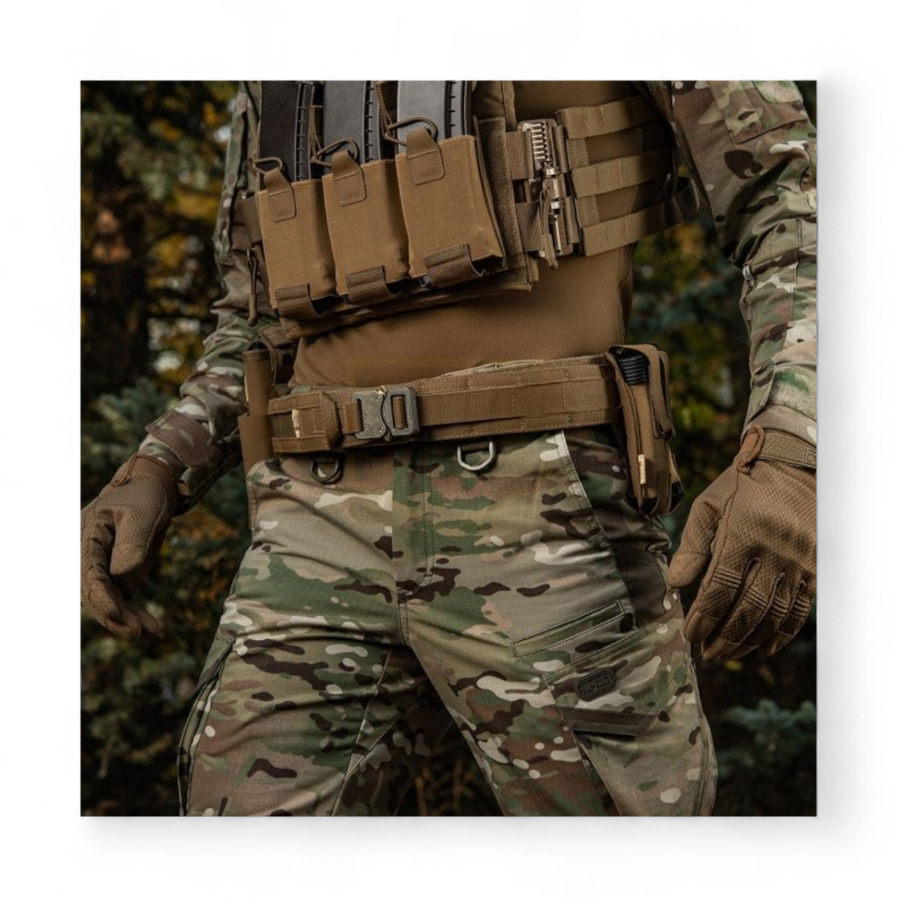 Cârligele din plastic de pe interiorul centurii exterioare se prind ferm de centura interioară, prevenind alunecarea sau rotirea chiar și în timpul mișcărilor intense sau în condiții de luptă.