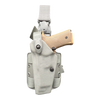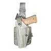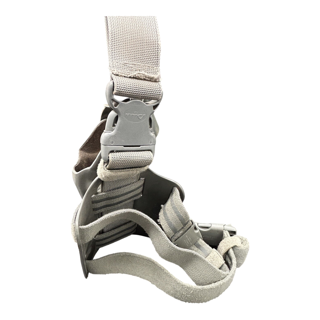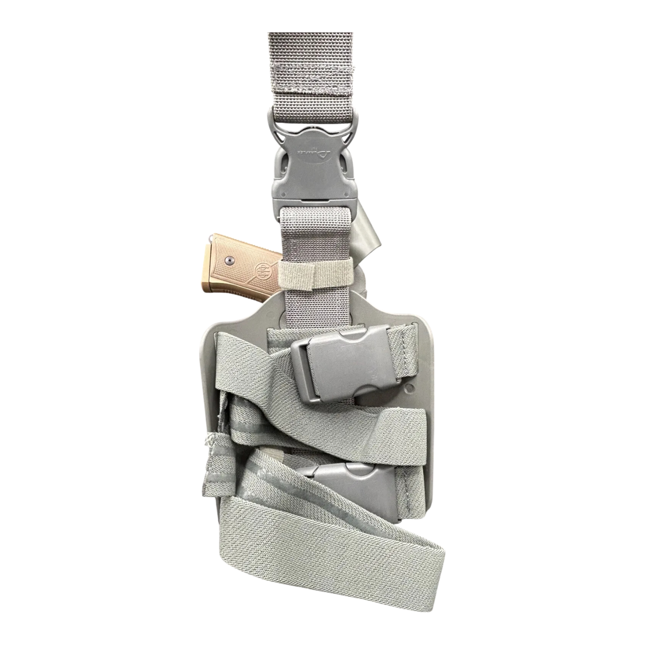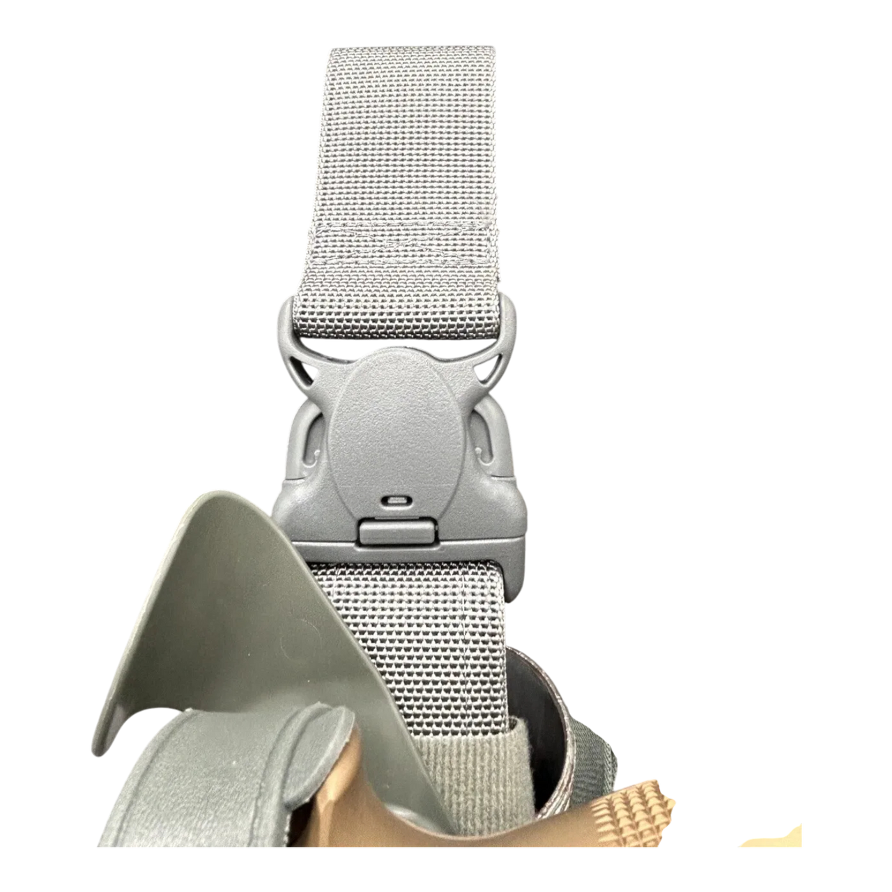 Placa pentru coapsă este prevăzută cu două curele orizontale cu inserții siliconice pentru fixare fermă, plus o curea verticală reglabilă pentru stabilitate și confort. Interiorul cu material SafariSuede protejează suprafața armei, iar finisajul exterior STX Tactical asigură rezistență la zgârieturi și impact.