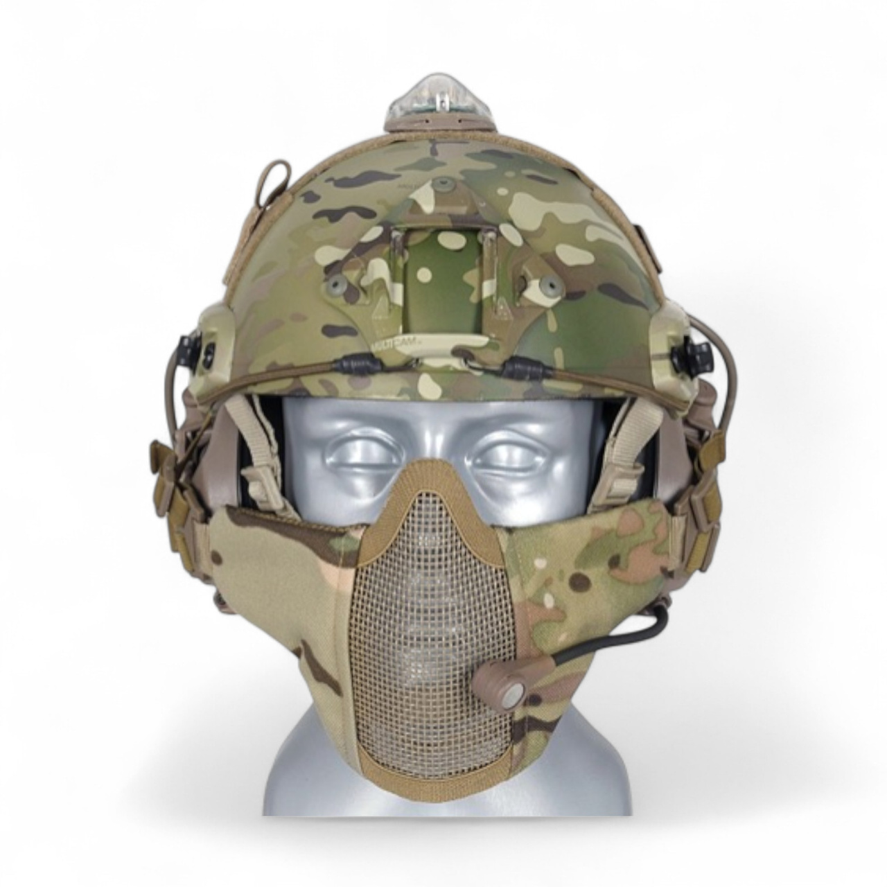Half Face Mesh Mask 2.0 de la WOSPORT este o mască de protecție pentru zona inferioară a feței, ideală pentru activități tactice precum airsoft, paintball sau antrenamente de tip mil-sim. Versiunea 2.0 aduce un plus de confort și protecție, inclusiv acoperirea urechilor, și este compatibilă cu majoritatea ochelarilor de protecție sau măștilor tactice pentru ochi.