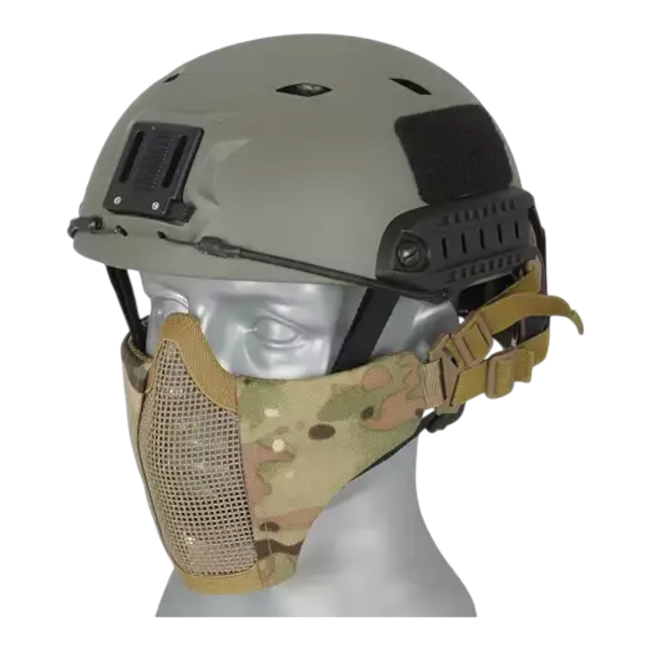 Half Face Mesh Mask 2.0 de la WOSPORT este o mască de protecție pentru zona inferioară a feței, ideală pentru activități tactice precum airsoft, paintball sau antrenamente de tip mil-sim. Versiunea 2.0 aduce un plus de confort și protecție, inclusiv acoperirea urechilor, și este compatibilă cu majoritatea ochelarilor de protecție sau măștilor tactice pentru ochi.