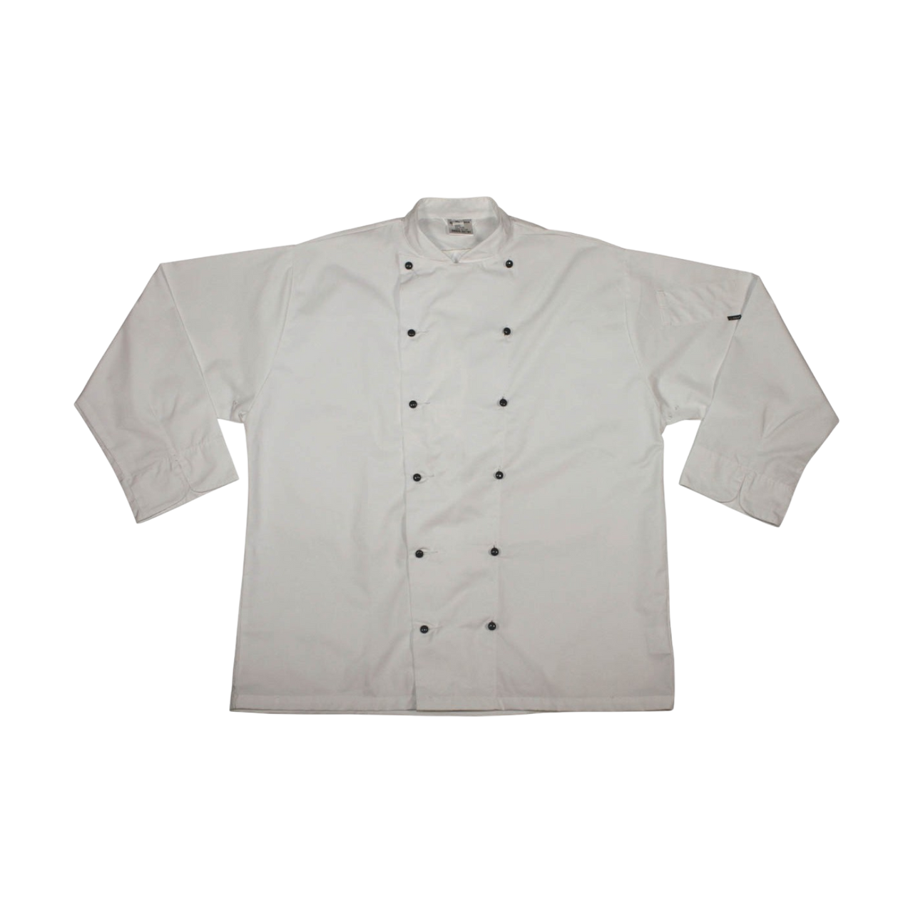 Designul clasic cu închidere dublă și nasturi tip capse negre asigură un aspect profesional și permite schimbarea rapidă a feței în caz de murdărire, un detaliu esențial în mediul HoReCa. Mânecile lungi oferă protecție suplimentară în timpul lucrului, iar croiala lejeră permite libertate de mișcare pe durata întregii zile.