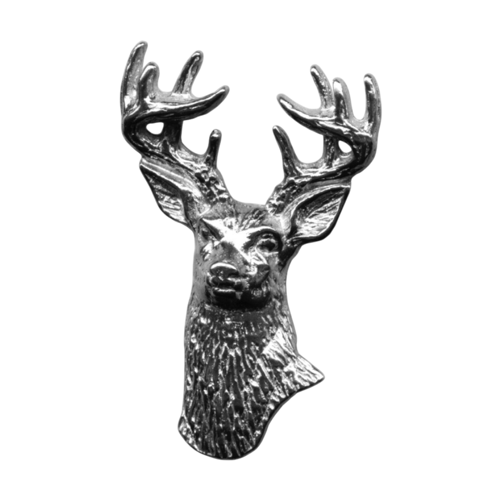 • Insigna de vanatoare pentru palarie - Cap de cerb rosu - Argintiu