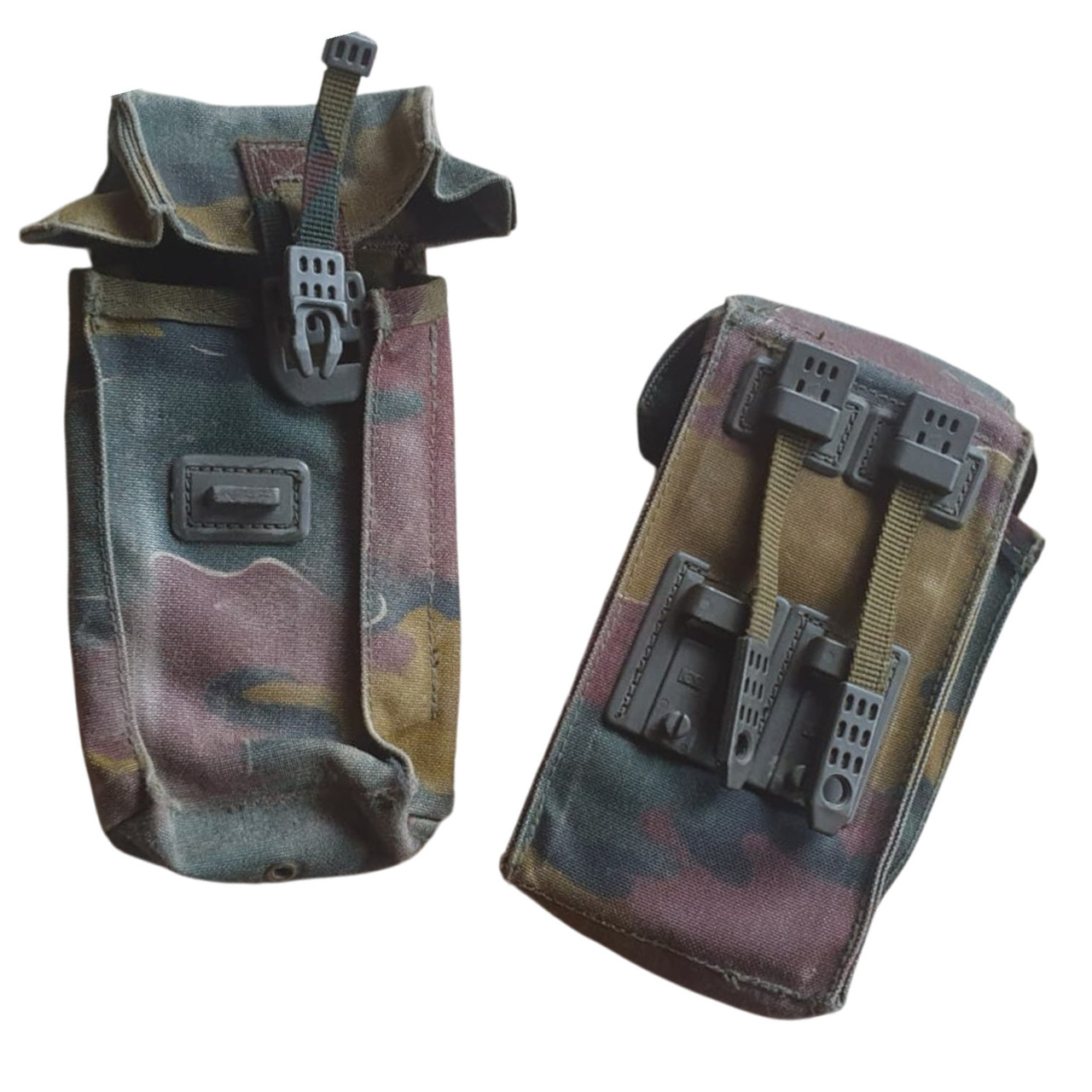 Acest pouch original pentru muniție a armatei belgiene are un design cu două compartimente pentru depozitarea eficientă și acces rapid la muniție. Confecționată în camuflaj militar autentic, oferă durabilitate fiabilă și utilizare practică pe teren. Ideală pentru colecționari, reconstituitori sau pasionați de tactică.