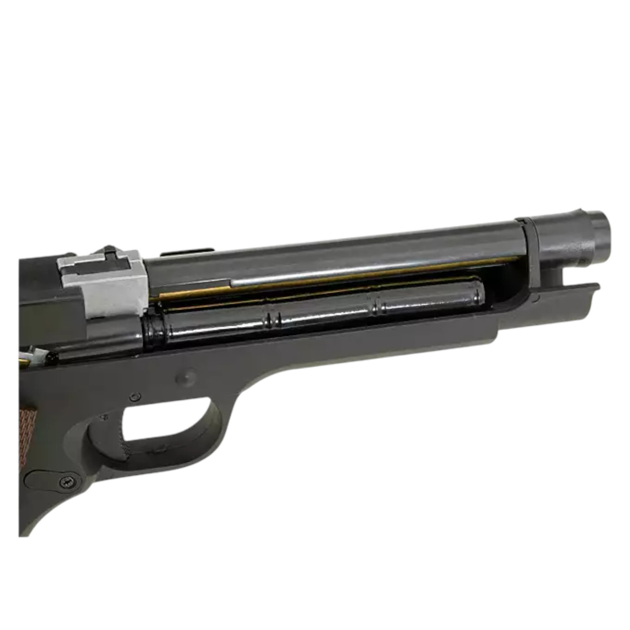 - Pistol prevăzut cu un sistem de hop up reglementat.